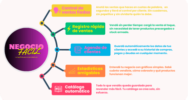 Negocio Fácil fue creada para ayudarte a vender, cobrar y entender mejor tu negocio. Vas a poder llevar un registro de tus ventas de manera fácil, rápida y sin complicaciones.
