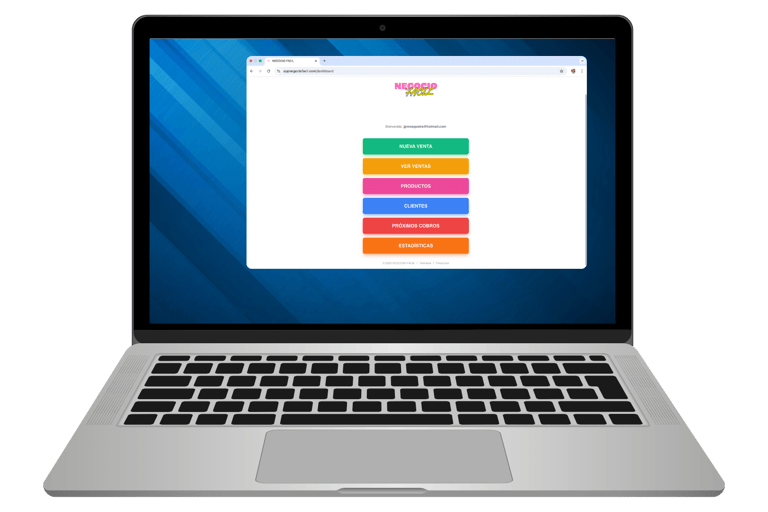 Negocio Fácil se adapta a cualquier pantalla. Si estás en tu casa, local o preferís una pantalla más grande, también podés usarla desde cualquier navegador web desde tu computadora. Todo queda sincronizado.